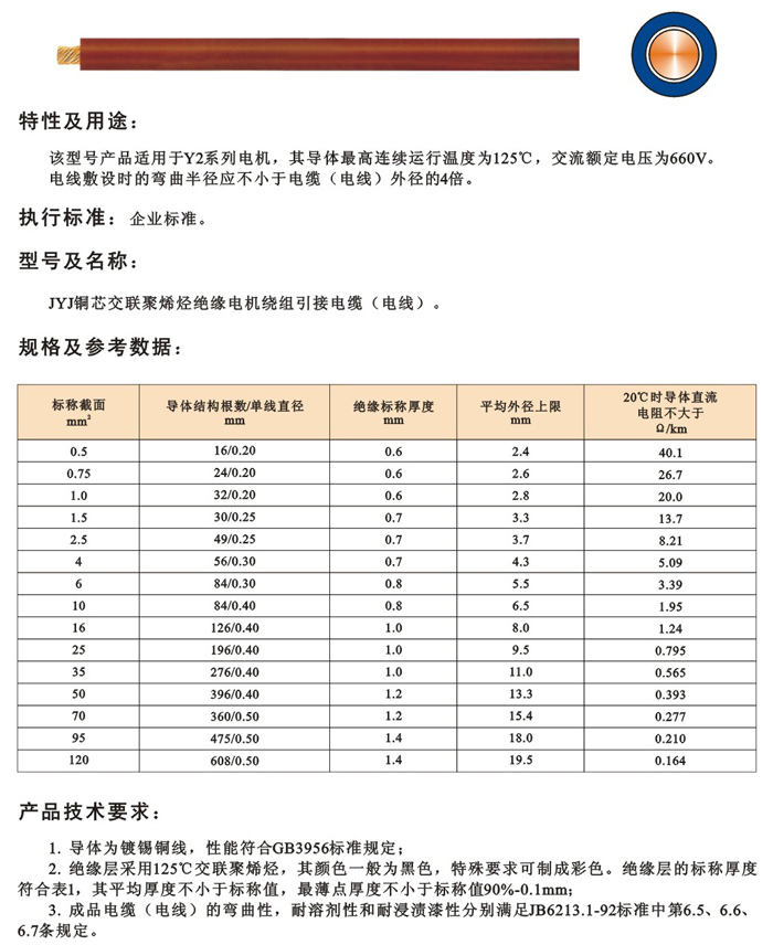 JYJ 125℃電機繞組引接軟電纜和軟線